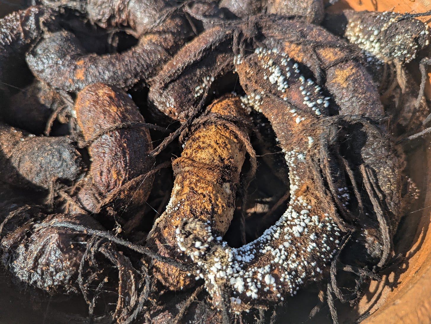 Next week, in the San Joaquin Valley of California, will begin the unearthing of Biodynamic preparations buried last autumn. Stuart has already started unearthing preparations in Virginia. Take a look at the beautifully transformed chamomile preparation